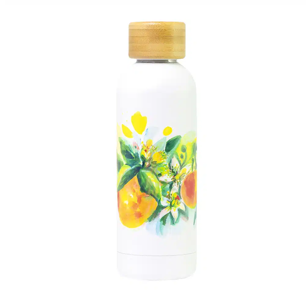 Lasciati conquistare dal fascino della Sicilia con la nostra Bottiglia Termica Arance in Fiore. Immergiti nei colori vivaci e brillanti che raffigurano i paesaggi e gli elementi tipici della nostra terra.