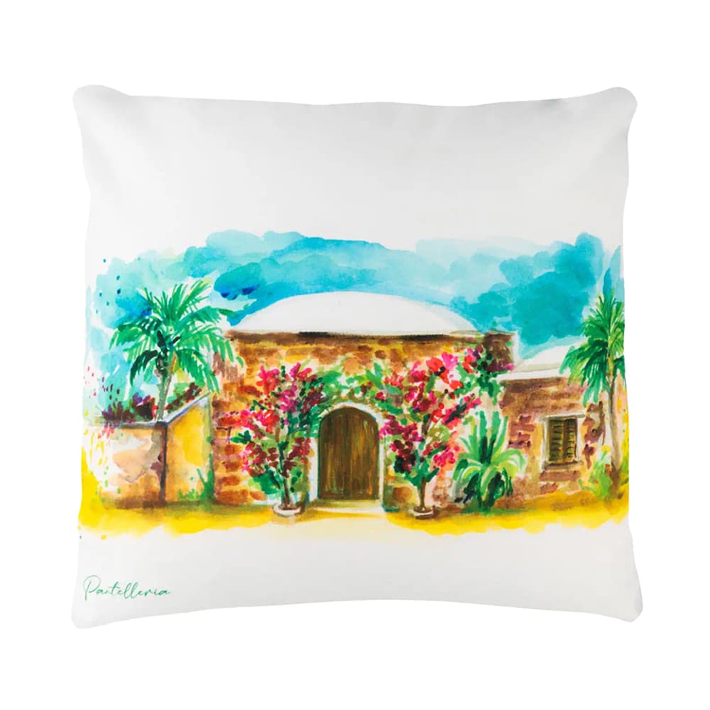Il Cuscino Dammuso Palme in Velluto coniuga la morbidezza del velluto con la vivacità dei colori.
