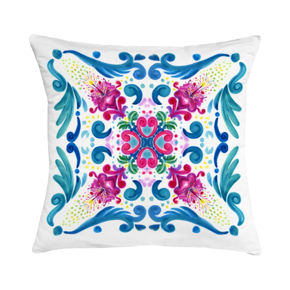 Il Cuscino Maiolica Ipnotica coniuga la morbidezza del cotone con la vivacità dei colori con eleganza e originalità.