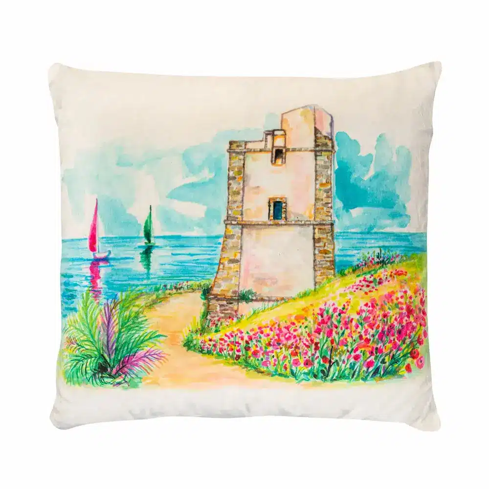 Il Cuscino Torre Saracena in Velluto, coniuga la morbidezza del velluto con la vivacità dei colori. Perfetto per arredare ogni ambiente della tua casa con eleganza e originalità.