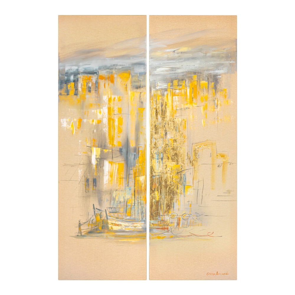 Barche d’Oro si consacra come un inno alla rinascita, dove il paesaggio costiero viene avvolto da una luce quasi mistica. In questo dittico, l'artista ferma l'attimo esatto in cui il sole invade la scena, trasformando ogni riflesso in un tocco prezioso, mentre le tonalità calde creano un’aura accogliente. Un’opera pensata per chi vuole trasformare le pareti di casa in una finestra aperta sul mare.