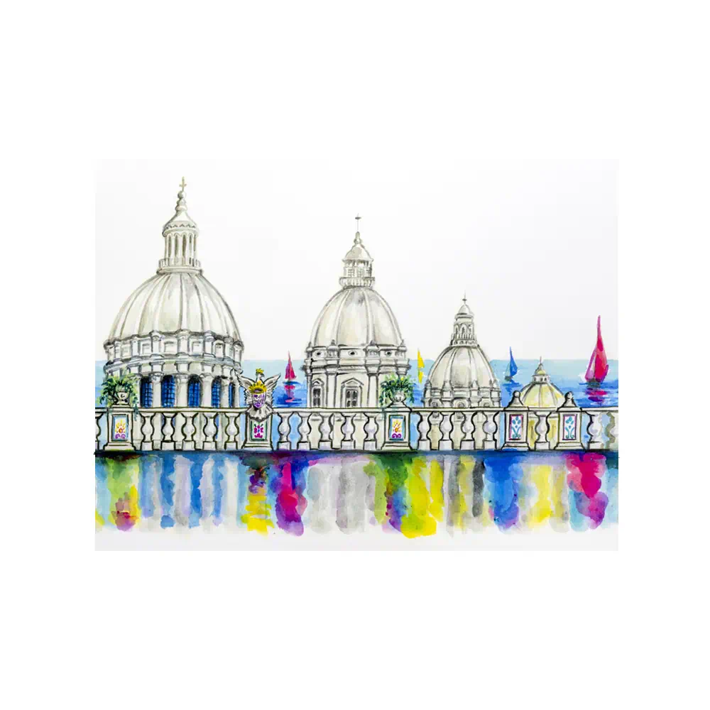 Esplora la bellezza della Sicilia attraverso la Litografia Cupole Skyline, vera opera d'arte che cattura l'anima dell'isola.
