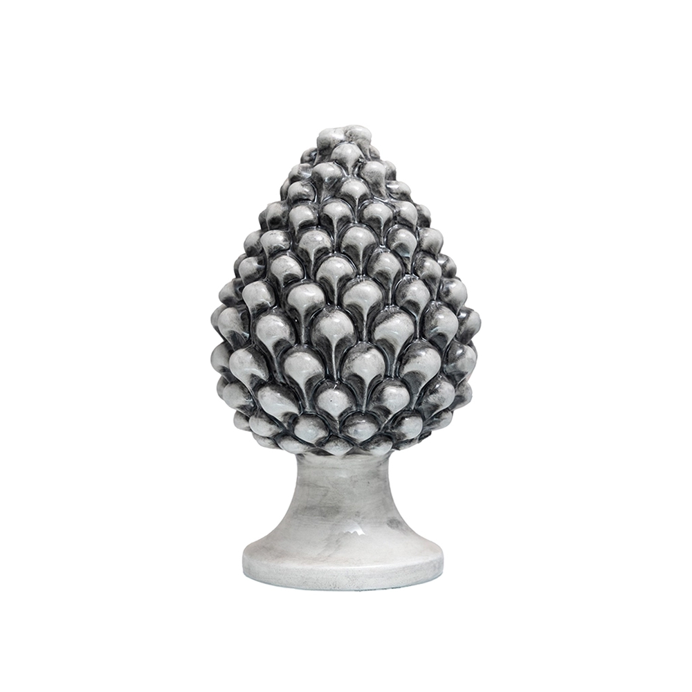 Da secoli simbolo di vita eterna, la pigna di Caltagirone artigianale Grigio Fumé è amata per la sua ricca simbologia e il suo significato intrinseco.