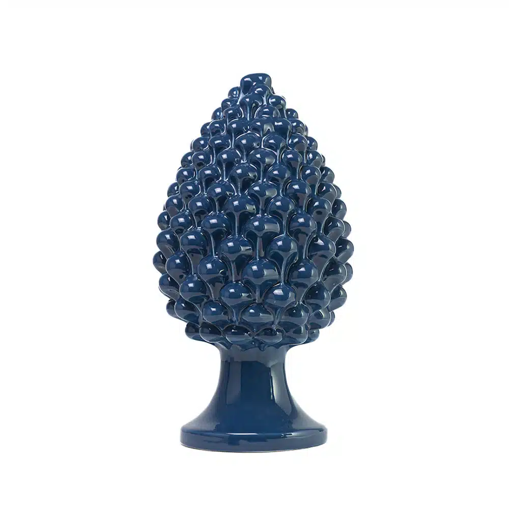 Da secoli simbolo di vita eterna, la pigna in ceramica di Caltagirone Blu Marino è amata per il suo colore profondo e ricercato.
