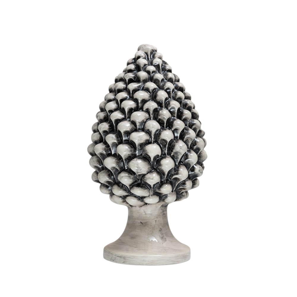 Da secoli simbolo di vita eterna, la pigna in ceramica di Caltagirone Grigio Fumé è amata per la sua ricca simbologia e il suo significato.