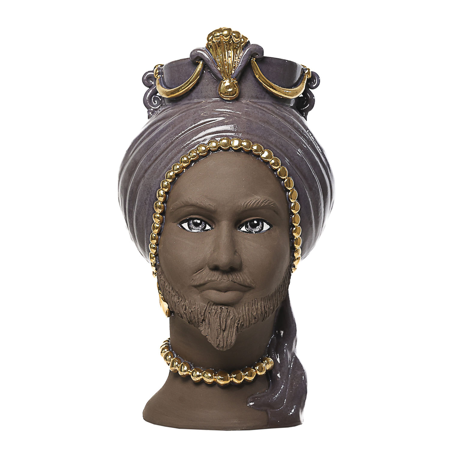 La Testa di Moro Acamante L in argilla nera e oro è modellata a mano dai maestri ceramisti di Caltagirone, con dettagli in oro che esaltano la sua regalità. La finitura materica, conferisce profondità e forza espressiva. Questo simbolo siciliano racchiude storia, leggenda e artigianalità in un oggetto sofisticato. Perfetta per decorare ambienti eleganti e moderni.
