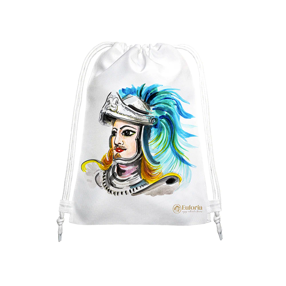 Porta con te eleganza e comodità con lo Zainetto Pupo, decorato con simbolo del pupo siciliano. Realizzato in materiali resistenti e durevoli, offre spazio per libri, accessori e dispositivi. Con cordoncini regolabili e chiusura a coulisse, è ideale per uso quotidiano e attività all’aperto, aggiungendo un tocco di cultura siciliana al tuo outfit.